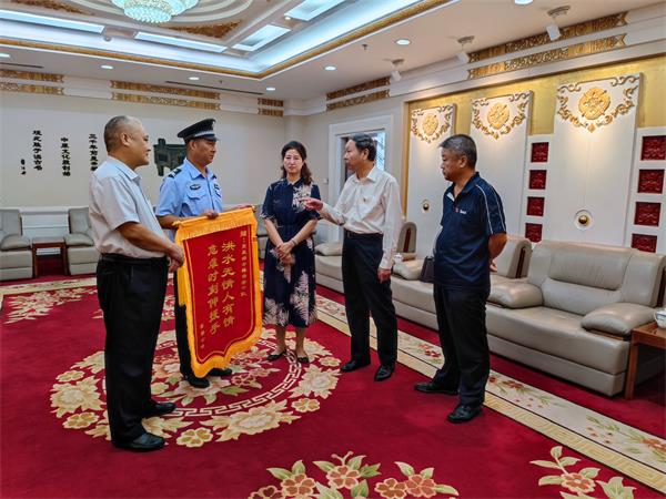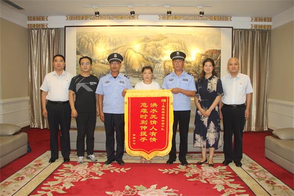 2021年7月28日下午3點(diǎn),“感謝你們,我這條命是你們撿回來的!”安勤公司員工曹運(yùn)玲拿著“洪水無情人有情,危難時(shí)刻伸援手”的錦旗在市黨政綜合大樓一樓會(huì)客室送到市黨政綜合樓保安中隊(duì)中隊(duì)長戶永豐手中,感謝他們的救命之恩。安陽市機(jī)關(guān)事務(wù)中心、三級(jí)調(diào)研員陳紹華,機(jī)關(guān)事務(wù)中心、保衛(wèi)科長孫文勝,安陽市安勤商務(wù)公司董事長兼總經(jīng)理劉全喜;安勤商務(wù)公司副總經(jīng)理王軍;安陽經(jīng)開集團(tuán)黨委委員、副總經(jīng)理劉志霞,公司黨委委員、副總經(jīng)理魏東,總經(jīng)理助理、人防分公司經(jīng)理李向陽,參加此次活動(dòng)。