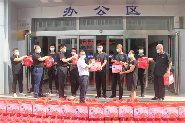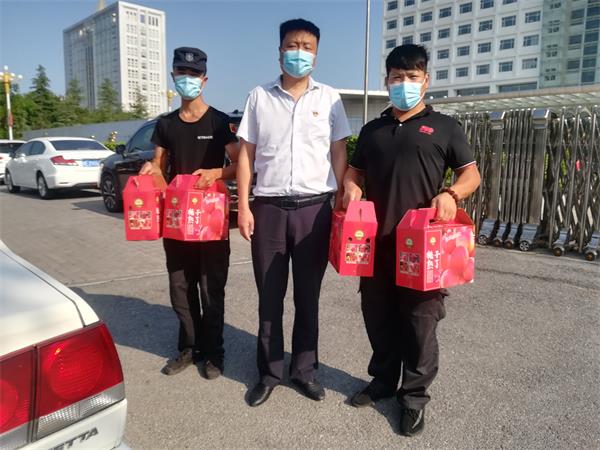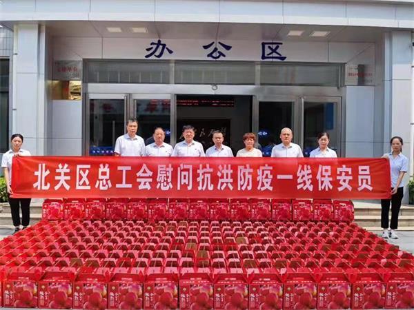8月9日、10日北關(guān)區(qū)總工會(huì)副主席薛梅、保障部部長(zhǎng)司尚雯來(lái)到公司,送來(lái)抗洪防疫慰問(wèn)品鮮桃500多箱,向堅(jiān)守崗位、奮戰(zhàn)一線的保安隊(duì)員進(jìn)行慰問(wèn),提醒大家做好防控工作的同時(shí)一定要做好自身防護(hù)。