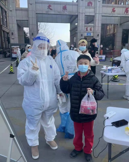 金鼎園小區(qū)配合社區(qū)工作,擔(dān)負(fù)起其他兩個小區(qū)全員核酸檢測任務(wù),工作量非常大。杜春輝就動員懷孕在家休養(yǎng)的愛人高寧寧到金鼎園當(dāng)志愿者。高寧寧來到項目后幫助物業(yè)維持秩序,協(xié)助醫(yī)護(hù)人員做核酸檢測。小區(qū)的業(yè)主得知后,都被她的精神所感動,小區(qū)業(yè)主、業(yè)委會、社區(qū)領(lǐng)導(dǎo)贊揚(yáng)她為最美的志愿者。