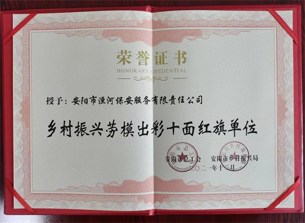 公司榮獲2021年安陽(yáng)市鄉(xiāng)村振興勞模出彩“十面紅旗單位”榮譽(yù)稱號(hào)