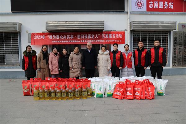 為進(jìn)一步了解基層群眾的需求,切實(shí)解決他們在生活中的實(shí)際問題,讓他們度過一個溫暖、祥和、快樂的新春佳節(jié)。1月17日下午,公司總經(jīng)理魏東帶領(lǐng)志愿者帶著米、面、油、春聯(lián)等深入盤庚中社區(qū)開展了“義寫春聯(lián)迎新春”暨“我為群眾辦實(shí)事慰問孤寡老人”志愿服務(wù)活動。