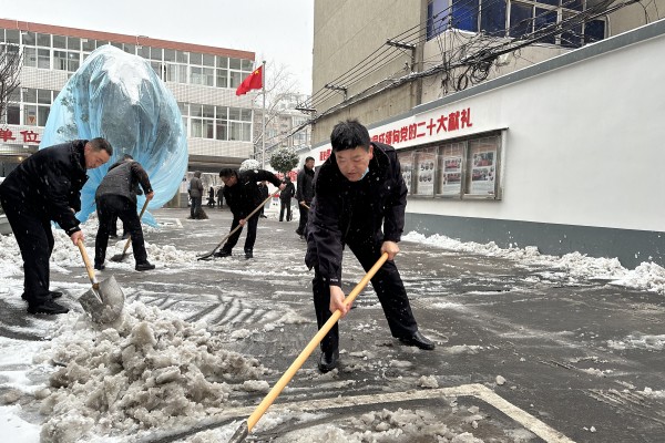 公司黨委書記、董事長王高峰帶領班子成員率先垂范,公司干部職工積極響應,有序展開清冰掃雪工作。大家不畏嚴寒,分工明確、團結合作,手持鐵锨、揮動掃帚,鏟除積雪、清掃路面,配合默契、干勁十足?,F(xiàn)場“揮舞的鐵鍬”成為了皚皚白雪中暖心的一道風景線。由于準備充分,組織有力,發(fā)動及時,經(jīng)過1個多小時的不懈努力,辦公樓院內(nèi)和門前三包積雪基本清理干凈,保障了道路暢通安全,路面恢復了平日的干凈和整潔。