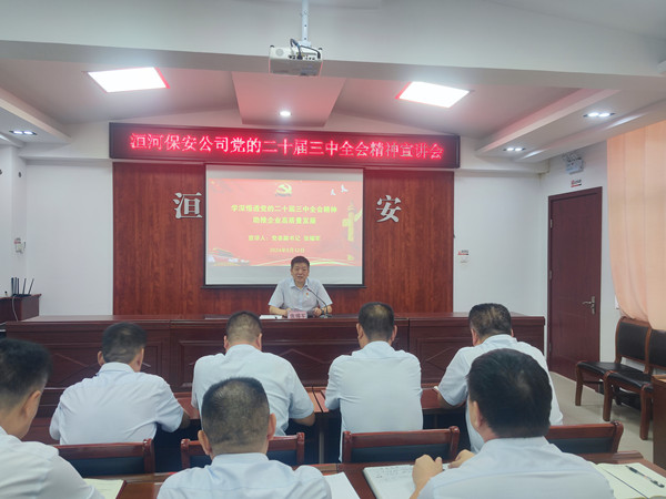 宣講會上,張錫軍從深刻認(rèn)識黨的二十屆三中全會的重大意義、準(zhǔn)確把握黨的二十屆三中全會的主要內(nèi)容和精神實(shí)質(zhì) 、強(qiáng)化保安工作與全會精神的深度融合、深入貫徹全會精神開創(chuàng)工作新局面、以全會精神為引領(lǐng)推動企業(yè)高質(zhì)量發(fā)展等方面,結(jié)合保安企業(yè)改革發(fā)展,為黨員干部帶來了一場精彩生動、內(nèi)容豐富的專題宣講。