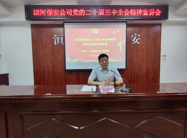 為全面深入學(xué)習(xí)領(lǐng)會黨的二十屆三中全會精神,切實(shí)把思想和行動統(tǒng)一到黨中央的決策部署上來,按照黨委工作安排,9月12日下午,公司黨委副書記、監(jiān)事長張錫軍以《學(xué)深悟透黨的二十屆三中全會精神,助推企業(yè)高質(zhì)量發(fā)展》為主題進(jìn)行宣講,各黨支部書記、部門負(fù)責(zé)人等40余人參加學(xué)習(xí)。
