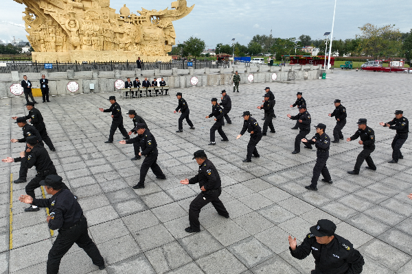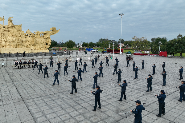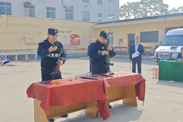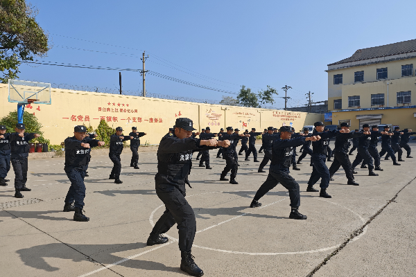 此次考核內(nèi)容為理論考試和實(shí)操技能考核。實(shí)操考核設(shè)置“隊(duì)列動(dòng)作”“擒敵拳”“交通指揮”“鋼叉操”“匕首操”“校園保安勤務(wù)處置預(yù)案”“金融防搶預(yù)案”“車輛爆胎應(yīng)急預(yù)案”“槍支拆裝”九個(gè)項(xiàng)目。