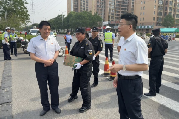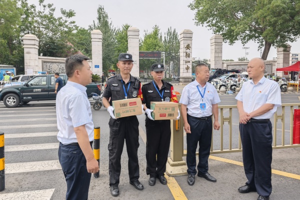 為切實(shí)做好高考期間安全保障工作,確保考生擁有安全、有序的考試環(huán)境,6月7日上午,公司領(lǐng)導(dǎo)班子深入市區(qū)各高考考點(diǎn),實(shí)地檢查督導(dǎo)高考安保工作,并親切慰問(wèn)堅(jiān)守一線的執(zhí)勤保安員,為他們送去防暑降溫物資和公司的關(guān)懷問(wèn)候。