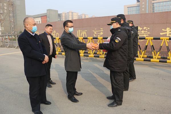 隨后,公司領(lǐng)導(dǎo)分成三組先后到人防安陽幼師、龍安區(qū)政府崗點,守押六大隊、守押十大隊駐地,特保大隊開發(fā)區(qū)巡防駐地、中國文字博物館崗點,鼎誠物業(yè)海興御花園、交警支隊項目部,藍(lán)盾駕校、鼎信公司,對堅守在工作崗位的員工進(jìn)行了慰問。