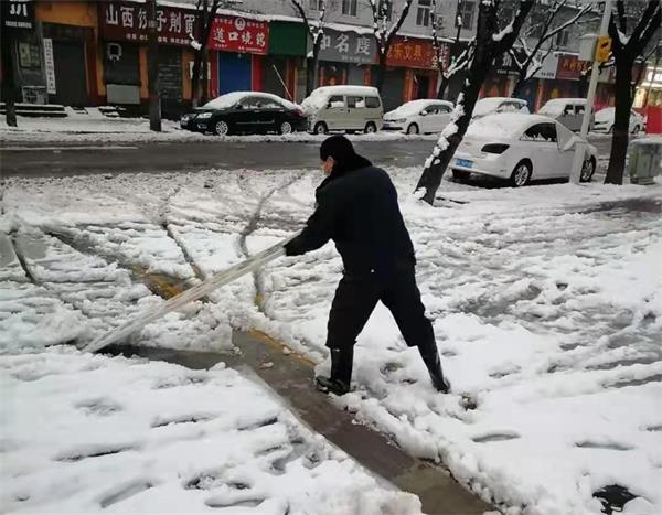 晨7時(shí),公司黨委副書記張錫軍帶領(lǐng)先到的同志開始清理積雪。隨后陸陸續(xù)續(xù)到機(jī)關(guān)上班的公司黨委委員高代獻(xiàn)和石培瑞、張海林、侯典芹等同志,也自發(fā)紛紛加入了掃雪的隊(duì)伍。與此同時(shí),公司各二級機(jī)構(gòu)工作人員、服務(wù)崗點(diǎn)的保安員主動作為,認(rèn)真清掃工作區(qū)域和門衛(wèi)周邊積雪。黨平同志因工具刺傷了手,鮮血直流,他卻全然不顧。