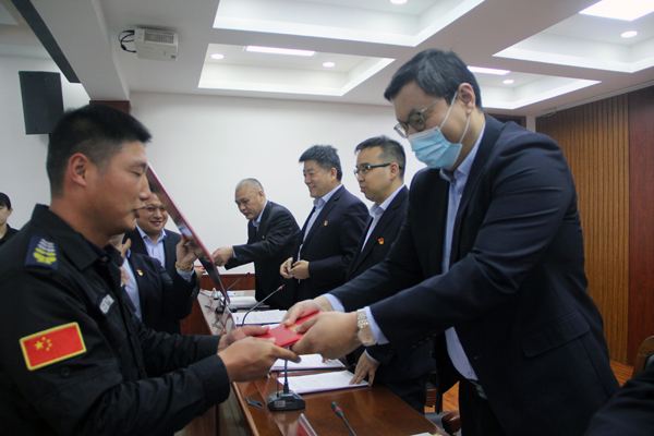 頒獎(jiǎng)儀式后,經(jīng)濟(jì)責(zé)任目標(biāo)部門負(fù)責(zé)人向公司黨委書記、董事長、總經(jīng)理王高峰依次遞交2021年經(jīng)濟(jì)責(zé)任目標(biāo)書。