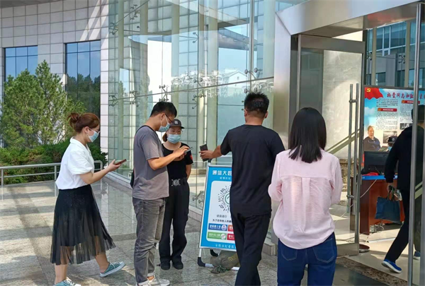 2021年7月中下旬,新冠病毒卷土重來,短短幾日,波及到三十多個省市。為有效預(yù)防、積極應(yīng)對新冠肺炎疫情,特保大隊派駐市紀委監(jiān)察委(公路局)崗特保中隊結(jié)合客戶單位,及時設(shè)立相關(guān)政策告知、防護知識宣傳,設(shè)置掃碼區(qū)、測溫區(qū)、登記區(qū)等,并幫助訪客進行驗證,對辦公人員尤其外訪人員嚴格把控,認真測溫做好登記并出示健康碼,行程卡。