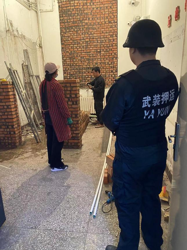 根據(jù)相州農(nóng)商銀行、安陽市公安局、安陽銀保監(jiān)分局關(guān)于印發(fā)《安陽市銀行業(yè)金融機(jī)構(gòu)第七輪安全評(píng)估工作方案》的通知精神,守押十二大隊(duì)相州農(nóng)商銀行金庫需要改造,改造期間金庫大門打開次數(shù)增多,增加了安全隱患,為確保金庫改造時(shí)期安全工作,大隊(duì)要求守庫員人時(shí)刻提高安全意識(shí),嚴(yán)格按照工作流程做好工作。4月4日,大隊(duì)相州農(nóng)商銀行金庫開始改造,守庫室隊(duì)員嚴(yán)格按照大隊(duì)要求,執(zhí)行操作規(guī)程,為安全完成改造工作提供了安全保障。