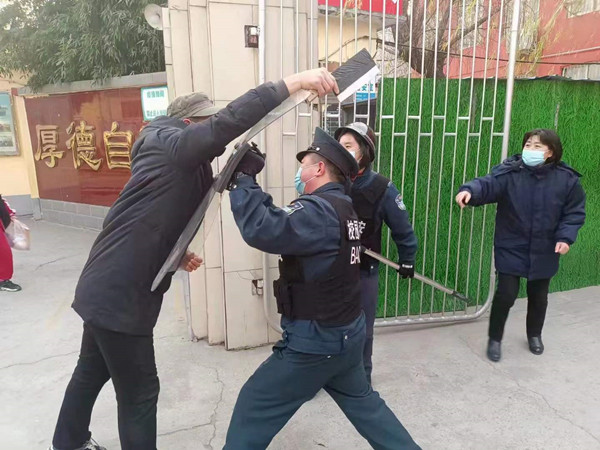 為積極應(yīng)對新冠疫情,規(guī)范有效開展防控工作,人防分公司要求校園保安開展校園疫情紅黃碼防控和防暴力預(yù)案演練,強(qiáng)化疫情防控工作。
