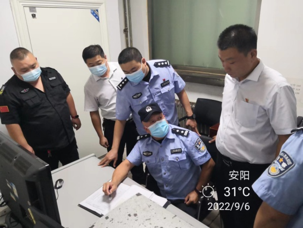 9月6日上午,安陽市公安局治安支隊民警郭慶林、張濤一行在守押分公司領(lǐng)導韋洪東的陪同下,到七大隊檢查工作,大隊長楊中朝全程陪同。