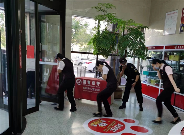 為進(jìn)一步強(qiáng)化“國慶”、“二十大”期間金融部門銀行業(yè)對外營業(yè)安全及應(yīng)對突發(fā)事件能力,10月3日下午,招商銀行聯(lián)合特保大隊(duì)駐招商銀行特保班進(jìn)行了消防應(yīng)急預(yù)案演練,特保班長王瑜負(fù)責(zé)組織指揮,特保隊(duì)員分工明確行動(dòng)迅速、妥善處理險(xiǎn)情,受到銀行保衛(wèi)部經(jīng)理王瀟曉的好評。