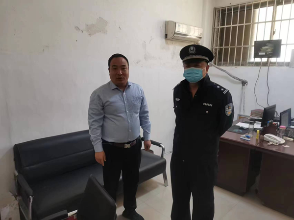 10月10日,殷商分局民警到守押五大隊檢查槍彈、消防安全工作,大隊長馮文峰陪同檢查。