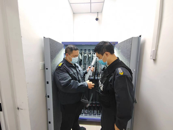 會后,大隊領(lǐng)導(dǎo)對槍支、彈藥保管柜進行全面檢查。