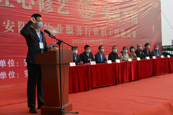 10月27日上午,安陽市物業(yè)服務行業(yè)職業(yè)技能競賽——2022年“鼎誠杯”物業(yè)服務行業(yè)職業(yè)技能競賽啟動儀式在安陽市惠澤園人才公寓舉行。市總工會、市房產(chǎn)事務中心、市總工會城建交通水利工會、市物業(yè)服務行業(yè)工會聯(lián)合會、市洹河保安服務有限責任公司黨委、安陽鼎誠物業(yè)服務有限公司、市物業(yè)管理行業(yè)協(xié)會有關領導出席啟動儀式。