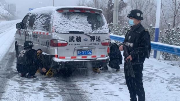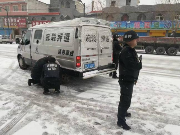 早上點(diǎn)名前,大隊(duì)長楊中朝就通過大隊(duì)微信工作群向各行中隊(duì)傳達(dá)了指示。一是要根據(jù)路況,精準(zhǔn)研判,行車中減速慢行,不超車,車上備足兩套防滑鏈,對于上下坡路段積雪嚴(yán)重的要及時(shí)進(jìn)行安裝防滑鏈,確認(rèn)安全后再行駛。二是針對銀行網(wǎng)點(diǎn)的路況要及時(shí)和銀行網(wǎng)點(diǎn)進(jìn)行溝通,車輛行駛不到的要及時(shí)進(jìn)行上報(bào),通過與銀行網(wǎng)點(diǎn)聯(lián)系,做到延遲送達(dá)或者暫不運(yùn)送,謹(jǐn)記安全第一。三是要根據(jù)上午運(yùn)送的線路路況,對下午的出車接款時(shí)間做出調(diào)整,通過與銀行網(wǎng)點(diǎn)的溝通聯(lián)系,適時(shí)提前下午出車的接款時(shí)間,力爭在晚上溫度下降前安全返回。