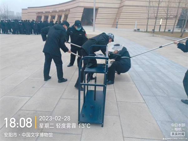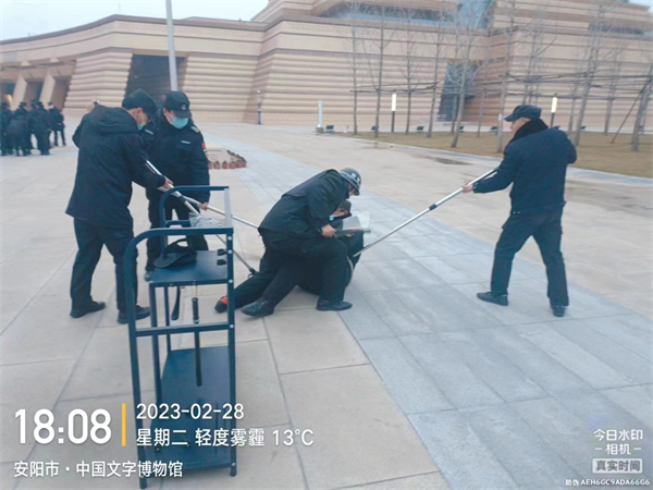 為增強(qiáng)特保隊(duì)員的反恐安全意識,提高對暴恐突發(fā)事件的應(yīng)變和處置能力,2月28日,特保大隊(duì)駐中國文字博物館中隊(duì)組織開展了反恐防暴應(yīng)急演練活動。