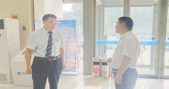 為加強(qiáng)與銀行客戶的溝通交流,提升服務(wù)質(zhì)量,8月10日,守押五大隊(duì)副隊(duì)長程濤走訪了建設(shè)銀行西環(huán)支行、鋼城支行、永明支行等網(wǎng)點(diǎn)。