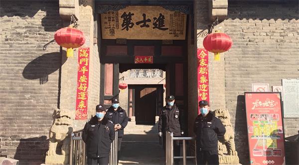 馬氏莊園位于安陽市西部20公里的西蔣村,是清代廣東巡撫 馬丕瑤的府第,是全國重點(diǎn)文物保護(hù)單位,國家AAAA級旅游景區(qū),全國紅色旅游經(jīng)典景區(qū),河南省廉政教育基地。由于春節(jié)長假前來游覽的人數(shù)劇增,人防二大隊(duì)?wèi)?yīng)約擔(dān)負(fù)了馬氏莊園節(jié)日期間安保工作。為確保任務(wù)的圓滿完成,大隊(duì)領(lǐng)導(dǎo)班子十分重視,指派李伏林中隊(duì)長帶隊(duì),挑選形象好、責(zé)任心強(qiáng)的隊(duì)員參加。隊(duì)員們認(rèn)真履職維護(hù)現(xiàn)場秩序,為行動不便和需要幫忙的游人提供幫助,贏得了群眾的好評,展示了洹河保安良好形象。