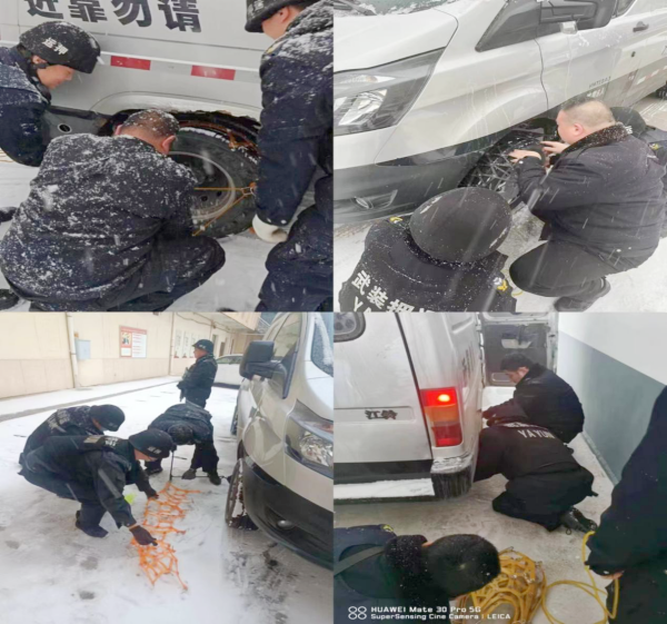 各車組立即按照大隊要求,迅速行動,安裝好防滑鏈,繼續(xù)執(zhí)行押運任務(wù),確保冰雪天氣大隊勤務(wù)安全運行。