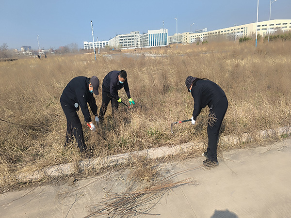接到任務(wù)后,各小組成員開始進(jìn)行有序的分工協(xié)作,大家踴躍參與,誰也不甘落后,兩人結(jié)伴,三五成群,搶在前、干在先,有的用機(jī)器推,有的用手拔,有的用剪刀修,有的用鐮刀割,還有的往外清理……,分工明確,責(zé)任到人,不放過任何一個(gè)死角和一株雜草。大家雖然忙得熱火朝天、汗流浹背、滿身塵土,但沒人埋怨,更沒人停下來,充分展現(xiàn)了鼎信公司員工不怕苦、不怕臟、不怕累的良好精神風(fēng)貌。