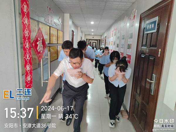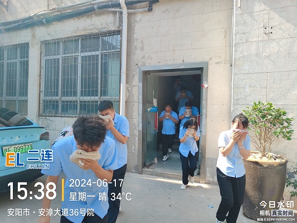 消防逃生演練模擬了公司大樓內(nèi)某處發(fā)生火災(zāi)的場景,全體人員在李衛(wèi)軍的指揮下,用濕毛巾捂住口鼻,彎腰沿著樓梯兩側(cè)的疏散路線快速、有序地向樓下撤離至安全地帶。整個演練過程緊張有序,達到了預(yù)期的效果。