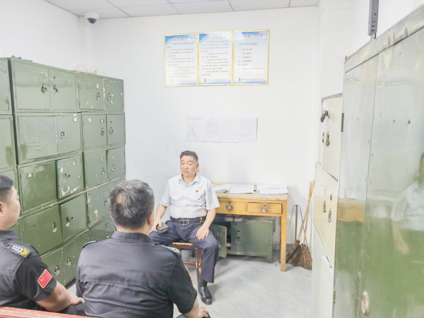 會(huì)后,大隊(duì)長(zhǎng)段俊杰檢查了押運(yùn)車輛的維保、衛(wèi)生和滅火器情況,辦公室、更衣室的消防器材和用電情況以及大隊(duì)臺(tái)賬登記;副隊(duì)長(zhǎng)張博對(duì)大隊(duì)槍支彈藥進(jìn)行了安全檢查,確保槍支彈藥狀態(tài)良好。