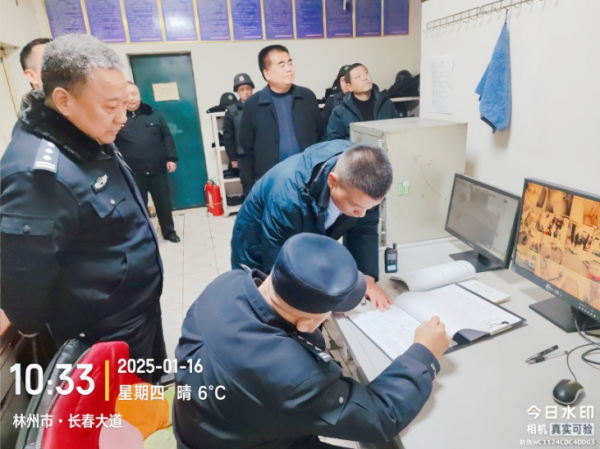 1月16日上午,安陽市公安局治安支隊民警郭慶林一行在守押分公司副經(jīng)理韋洪東陪同下,到守押七大隊檢查工作,大隊長楊中朝全程陪同。