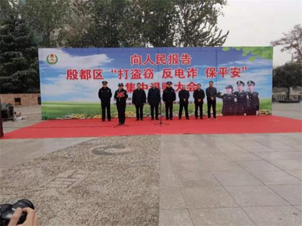2020年11月30日上午,殷都區(qū)委政法委組織的向人民報告“打盜竊,反電詐,保平安”集中退贓大會在安陽市貞元廣場舉行,人防四大隊殷都區(qū)巡防隊60名巡防隊員參加活動。