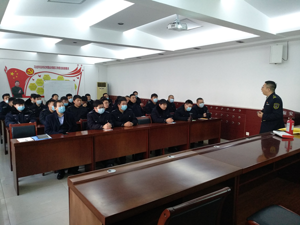 2021年1月5日下午,守押六大隊組織隊員聆聽消防安全知識講座,安陽市社安消防科技有限公司教官馬曉主持講座。