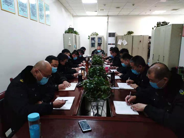 2021年1月6日晚,守押十二大隊召開全員會議,部署2021年安全工作,并對疫情防控做出安排。大隊長李艷軍主持會議。