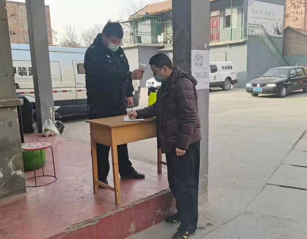 面對春節(jié)臨近,人員流動性明顯加大的情況,大隊強(qiáng)化人員管控,為防止中高危地區(qū)外來人員進(jìn)入工作單位,在工行大門設(shè)立檢測崗,扎緊疫情輸入的口子。大隊制定了應(yīng)急預(yù)案,派備勤車組進(jìn)駐駐地,車組合理安排人員輪流值守,落實24小時值班制度。大隊要求值班人員嚴(yán)防死守、認(rèn)真排查,對進(jìn)出的車輛和人員進(jìn)行消毒、登記備案,要求進(jìn)出人員必須佩戴口罩、測量體溫、掃描行程碼,符合要求方可入內(nèi)。