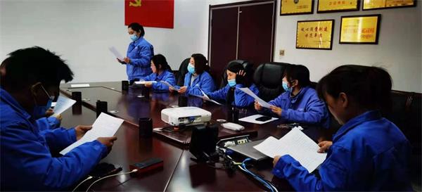 圖為河北大名華潤(rùn)班組織員工學(xué)習(xí)王高峰同志在公司“大學(xué)習(xí)、大整頓、大提升”工作部署暨紀(jì)律作風(fēng)整頓動(dòng)員會(huì)上的講話”精神以及華潤(rùn)燃?xì)夤镜陌踩R(shí)。
