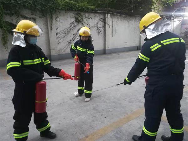 特保隊員在認(rèn)真學(xué)習(xí)了消防知識和消防設(shè)備使用方法后,現(xiàn)場進(jìn)行了處置火險演練。