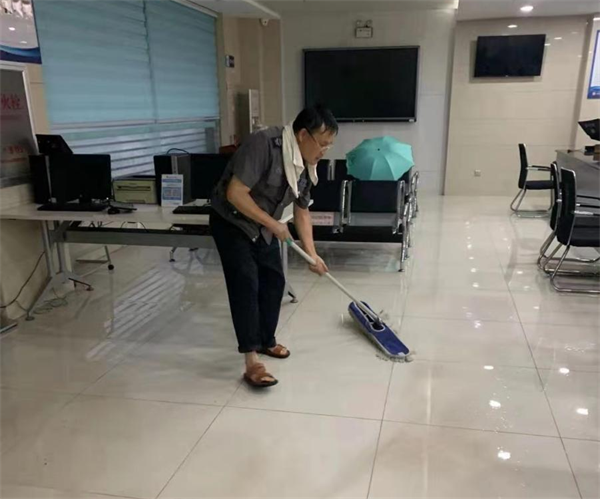 安陽(yáng)市住房公積金隊(duì)員陳建國(guó),凌晨發(fā)現(xiàn)大廳有雨水倒灌,及時(shí)用沙袋進(jìn)行加固封堵,清理大廳積水,衣服全部都濕透了,也毫無(wú)怨言。