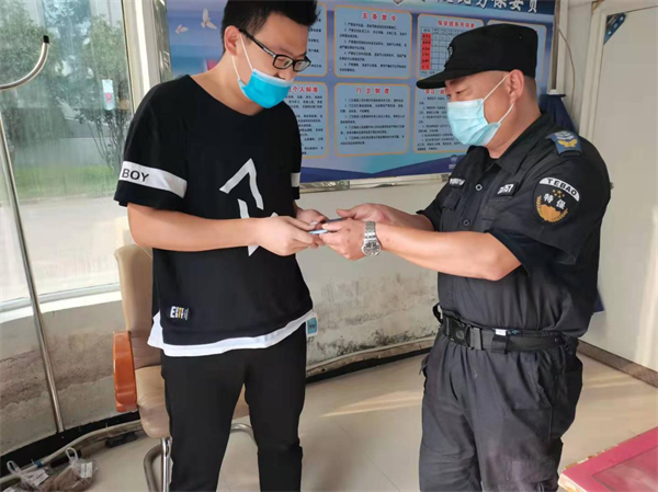 9月9日下午18時許,駐守在中國銀行人防一大隊隊員李勇在ATM自助設(shè)備附近執(zhí)勤巡邏時,發(fā)現(xiàn)地上有部九成新手機(jī),他立即聯(lián)系了當(dāng)班負(fù)責(zé)人,并在原地等失主。等了半小時未果后,把這部手機(jī)交給班長保管。一個小時后失主打來電話尋找手機(jī),得知是銀行保安拾到了非常欣喜。一會兒失主付先生趕到現(xiàn)場,經(jīng)核對無誤后將手機(jī)領(lǐng)回,手機(jī)失而復(fù)得,付先生臉上露出燦爛的微笑,他激動地說:“真的太感謝你們了,手機(jī)不值多少錢,但里面有很多照片和電話號碼不能丟啊。他對保安隊員的拾金不昧行為表示感謝!