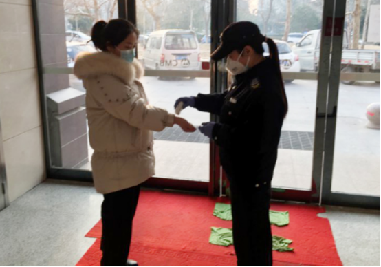 特保大隊五中隊女隊員李方,是一名普普通通的特保隊員,日常工作是負責招商銀行營業(yè)廳的安全保衛(wèi)工作,除了把日常的工作開展好,在本次疫情發(fā)生之后,她每日主動配合銀行領(lǐng)導給員工、顧客測量體溫,進行消毒工作,堅持一線,守護安全。