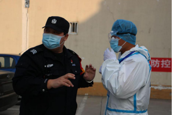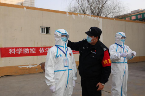 1月23日(臘月二十九),臨近春節(jié),輔警中隊(duì)忙著執(zhí)勤,保障春節(jié)期間的社會(huì)平安。李鑫和隊(duì)員白天站崗,晚上帶隊(duì)巡邏,已經(jīng)處于連軸轉(zhuǎn)的狀態(tài)。就在此時(shí),更艱巨的任務(wù)已經(jīng)在等待他們。1月24日(除夕)夜,華強(qiáng)城小區(qū)發(fā)現(xiàn)疫情,分局指令輔警中隊(duì)迅速趕往華強(qiáng)城小區(qū),執(zhí)行警戒任務(wù)。李鑫二話不說(shuō),帶領(lǐng)當(dāng)值特保(輔警)隊(duì)員,趕到執(zhí)勤地點(diǎn)。個(gè)人防護(hù)用品不夠,李鑫讓隊(duì)員先用上,自己開車到家,把愛人為自己家庭準(zhǔn)備的口罩和酒精帶到執(zhí)勤點(diǎn),緩解了防護(hù)用品缺乏的情況。待到分局防護(hù)物品送到前,現(xiàn)場(chǎng)所有執(zhí)勤隊(duì)員已經(jīng)按照要求做好防護(hù),執(zhí)行勤務(wù)。分局楊局長(zhǎng)夸獎(jiǎng)輔警中隊(duì)“到位迅速,防護(hù)嚴(yán)密,心中有警”。
