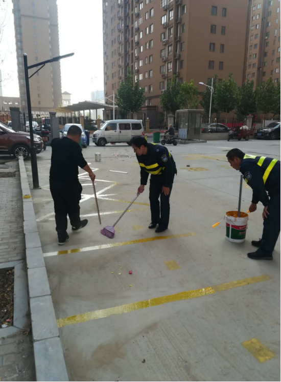 10月19日上午7點(diǎn)30分,中隊(duì)長(zhǎng)鄧紅軍帶領(lǐng)小區(qū)保安班長(zhǎng)王俊峰、隊(duì)員高力學(xué)無(wú)償為小區(qū)劃好停車位、消防通道、行人斑馬線。劃好的線條使整個(gè)小區(qū)內(nèi)整潔美觀,既保證了居民車輛的正常停放,也保證了消防車輛能夠正常出警。業(yè)主看到保安隊(duì)員能夠設(shè)身處地為業(yè)主的安全著想,都為保安隊(duì)員職業(yè)責(zé)任感點(diǎn)贊。