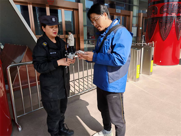 原來(lái)事情是這樣的。2月15日午時(shí),趙書(shū)娜巡邏時(shí)發(fā)現(xiàn)廣場(chǎng)上空有無(wú)人機(jī)飛行,便立即尋找無(wú)人機(jī)操控人員,當(dāng)巡查到宣文館喂鴿子處時(shí),發(fā)現(xiàn)有一名游客正在操控?zé)o人機(jī),趕忙上前勸阻。這時(shí)無(wú)人機(jī)剛好電量低掉落在高數(shù)十米的宣文館平臺(tái)上,該游客情緒有點(diǎn)波動(dòng),請(qǐng)求工作人員將其撿回。趙書(shū)娜隨即聯(lián)系中隊(duì)長(zhǎng),向館方上報(bào)情況后取來(lái)備用鑰匙。隨后,趙書(shū)娜和中隊(duì)長(zhǎng)搬著梯子一同到三樓、四樓平臺(tái)尋找,終于在四樓平臺(tái)找到掉落的無(wú)人機(jī)。經(jīng)核實(shí)無(wú)誤后,聯(lián)系無(wú)人機(jī)機(jī)主在安檢進(jìn)行登記認(rèn)領(lǐng),該名游客自稱是從北京前來(lái)參觀。
