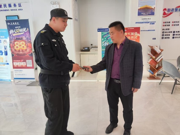4月14日上午11時(shí)許,郜科成如往常一樣對(duì)網(wǎng)點(diǎn)自助服務(wù)區(qū)進(jìn)行安全巡檢。在ATM機(jī)旁的操作臺(tái)上,一部嶄新的智能手機(jī)靜靜地躺著?!斑@個(gè)位置人流密集,失主肯定急壞了!”憑借多年安保工作經(jīng)驗(yàn),郜科成第一時(shí)間將手機(jī)交給網(wǎng)點(diǎn)主管,并協(xié)助調(diào)取監(jiān)控確認(rèn)失主離開時(shí)間。通過聯(lián)系手機(jī)運(yùn)營商和公安系統(tǒng)協(xié)助,網(wǎng)點(diǎn)工作人員很快鎖定失主信息。原來,李先生匆忙辦理業(yè)務(wù)時(shí)不慎遺落手機(jī),彼時(shí)正心急如焚地折返尋找。當(dāng)接到銀行電話時(shí),他難掩驚喜:“本來都做好最壞打算了,沒想到你們這么快就聯(lián)系上我了!”面對(duì)失主送來的感謝,郜科成靦腆地?cái)[擺手:“這都是份內(nèi)事,領(lǐng)導(dǎo)一直教我們要把客戶的事放在心上?!?