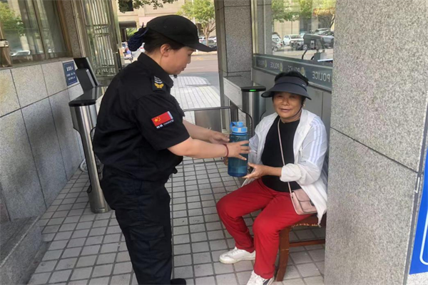 5月30日下午4:13分左右,一名群眾路過中院北門門口時,突然口干舌燥,向特保隊員鄧麗娜求助,鄧麗娜了解具體情況后,主動幫助該群眾打水,并讓其在門崗進行了休息,阿姨衷心感謝鄧麗娜為她提供幫助。