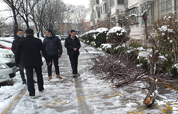 當(dāng)日一大早,申春林就帶領(lǐng)物業(yè)公司辦公室、應(yīng)急辦的人員深入到各項(xiàng)目單位,查看雪后災(zāi)情。在致中苑小區(qū)、電業(yè)局頤欣園小區(qū),申春林看到有樹枝被雪壓斷,他指出要及時查清受損情況,清理積雪現(xiàn)場,確保居民正常出行。在蔬菜基地,有兩個大棚遭被雪壓塌陷,有不同程度損壞,但均無人員傷亡事故。目前鼎誠物業(yè)員工正在積極修復(fù)大棚,減少損失。