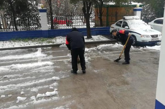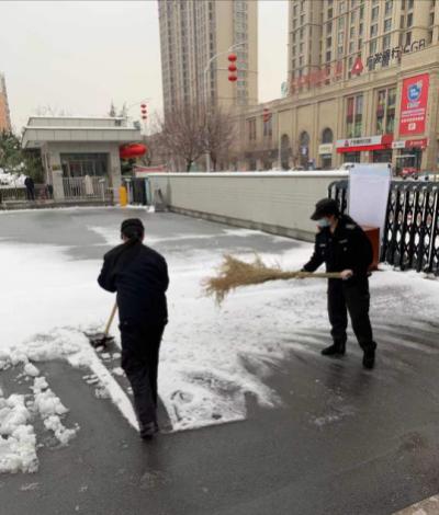 2月24日18時(shí)許,新年的第一場(chǎng)雪如期而來(lái),飄落的雪花給特保大隊(duì)派駐崗點(diǎn)院內(nèi)道路上鋪上了一層厚厚的積雪,為了消除安全隱患,確保客戶單位領(lǐng)導(dǎo)與工作人員的出行安全,特保大隊(duì)派駐各客戶單位隊(duì)員迅速行動(dòng)起來(lái),清掃積雪。隊(duì)員們周到的服務(wù)受到客戶好評(píng)。