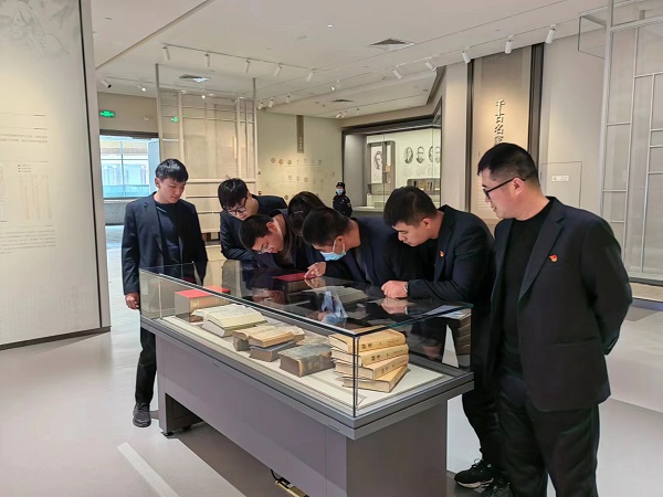 在“中國(guó)文字博物館”二期“徽文館”,黨員干部們依次參觀了“字書(shū)瓊林”“說(shuō)文解字”“詞典類”等專題展區(qū),詳細(xì)了解了民俗文化中所蘊(yùn)涵的漢字文化、古文字從古至今的研究成果,從歷代書(shū)法名家的名作中感悟漢字書(shū)法藝術(shù)的菁華。