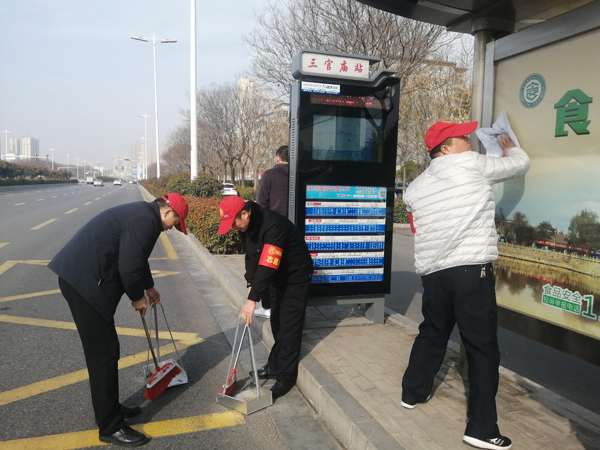 3月5日上午,第五黨支部志愿者帶著掃帚和抹布等工具,來(lái)到人民大道三官?gòu)R公交車(chē)站臺(tái)清除垃圾,清理衛(wèi)生死角?;顒?dòng)中,大家協(xié)作配合,發(fā)揚(yáng)不怕苦、不怕臟的精神,對(duì)公交站臺(tái)、人行道及路邊綠化帶內(nèi)的落葉、雜草、垃圾等進(jìn)行了全面清理打掃。經(jīng)過(guò)大家的辛勤勞動(dòng),公交站點(diǎn)兩旁的衛(wèi)生干凈整潔、煥然一新。