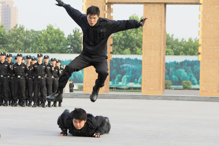 2006年,公司為促使人防保安服務(wù)由低端客戶向高端客戶升級(jí),進(jìn)一步提升企業(yè)核心競(jìng)爭(zhēng)力,決定實(shí)施品牌戰(zhàn)略,組建了特保大隊(duì)。大隊(duì)現(xiàn)有350余人,平均年齡24歲,其每名成員都經(jīng)過(guò)嚴(yán)格選拔和強(qiáng)度訓(xùn)練。今天的特保大隊(duì)已經(jīng)成為一支信念堅(jiān)定、作風(fēng)頑強(qiáng)、技能精湛、紀(jì)律嚴(yán)明、敢打必勝、勇于創(chuàng)新、銳意進(jìn)取的文明之師、威武之師,是公司對(duì)外展示的一張名片。